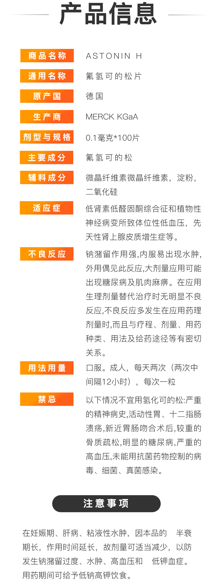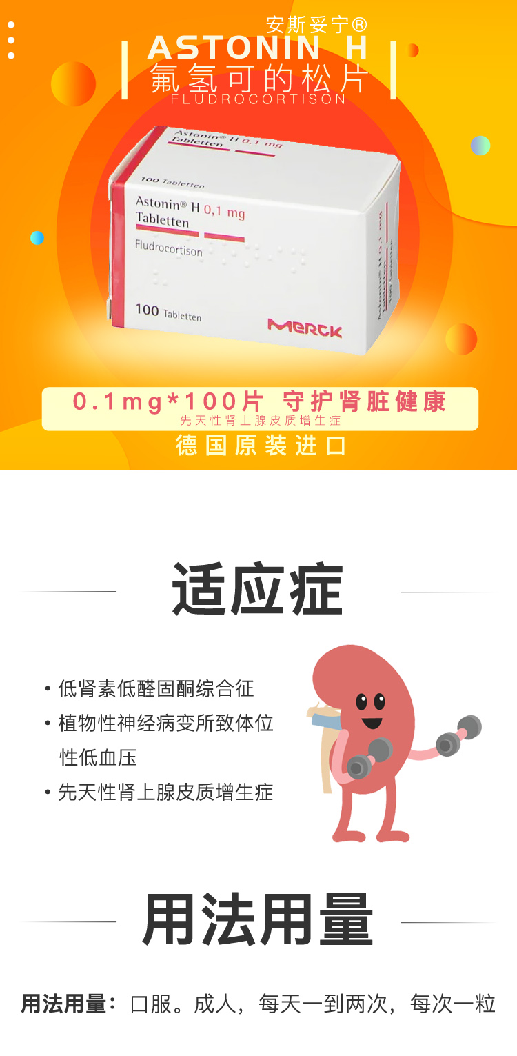 适应症/功能主治:低肾素低醛固酮综合症和植物性神经病变所致体位性低血压,先天性肾上腺皮质增生等